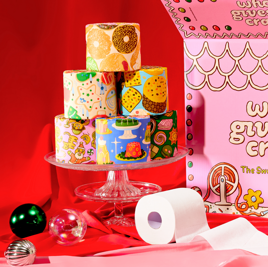 Add some sugar and cheer to your bathroom with 100% bamboo toilet paper! Decorate your bathroom with 24 or 48 rolls of confection themed toilet paper.